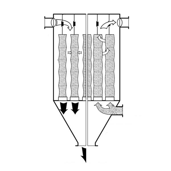 El flujo de aire inverso (p. ej., aire ambiente o gas inerte) barre continuamente el exterior de la bolsa filtrante, creando una diferencia de presión entre el interior y el exterior de la bolsa, lo que obliga a la capa de polvo a desprenderse. Estos colectores de polvo son adecuados para aplicaciones con bajas concentraciones de polvo y partículas gruesas.
