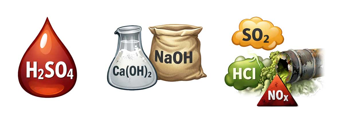 Ces poussières forment facilement des milieux corrosifs tels que l’acide sulfurique, l’acide chlorhydrique ou l’acide fluorhydrique.